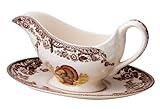 Spode's distinctive Woodland pattern depicts game animal and bird studies perfectly framed by a rich sepia-tone border of stylized Victorian flowers. The festive Turkey motif is on the Sauce Boat and Stand. The sauce boat has a 2 cup capacity and the stand measures 8- 1/2 inch Length x 6- 1/2 inch Width. The Turkey Sauce Boat and Stand feature a plump American turkey and are sure to be a family favorite.